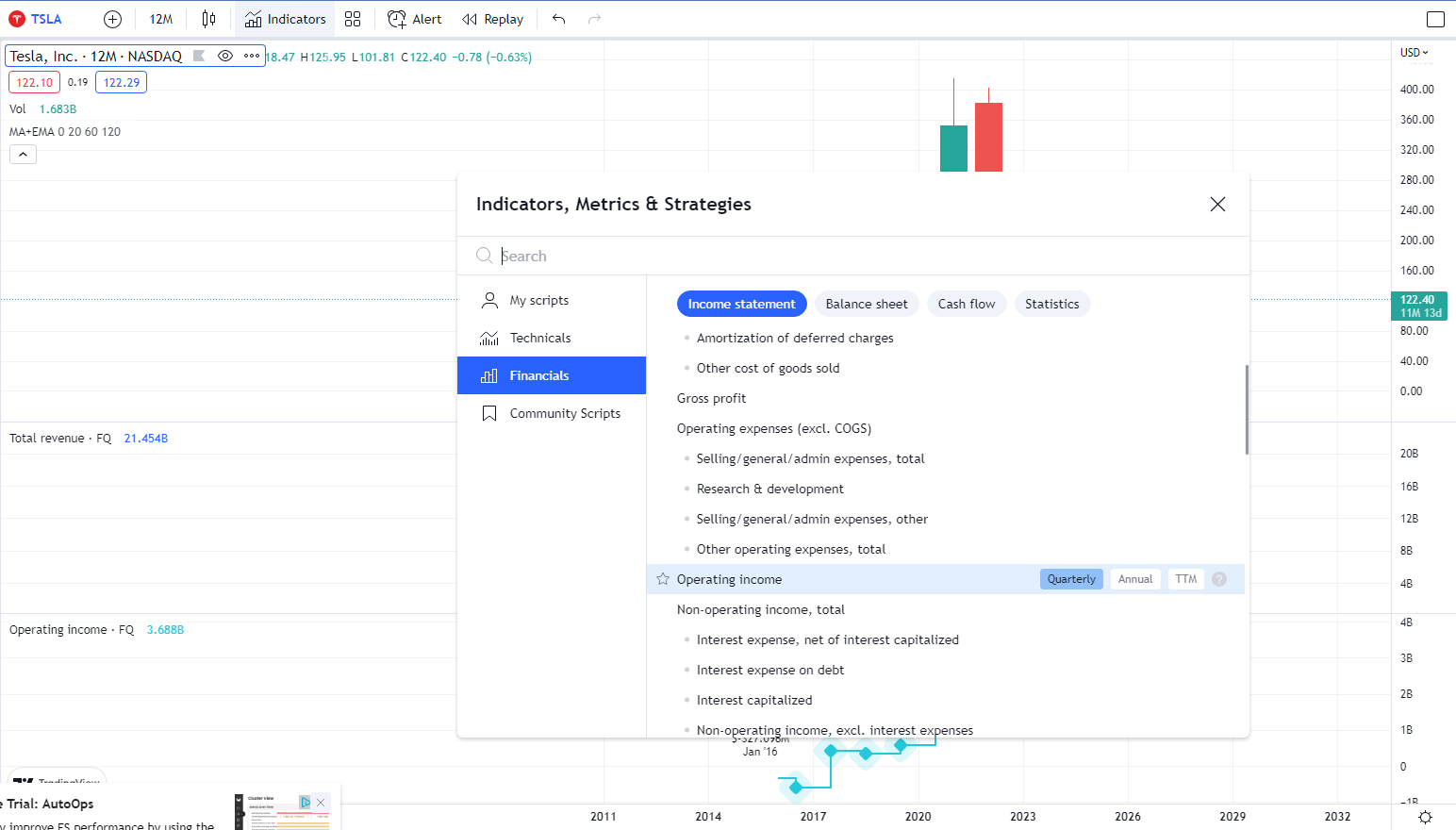 Tracking stock financial metrics in tradingview
